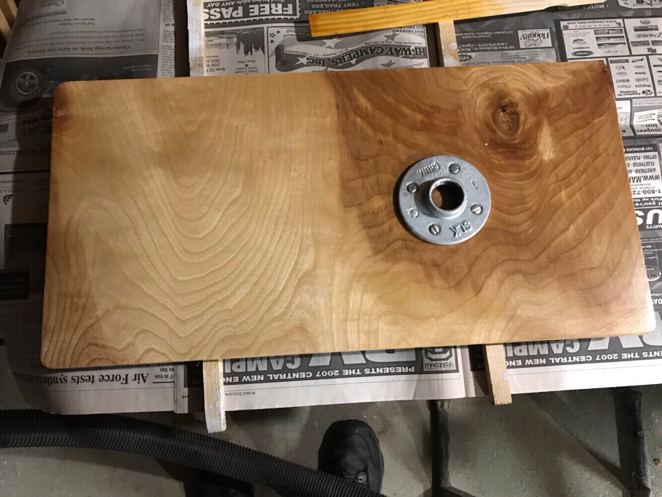 Note that I sized my table at 12” x 24” as a guess. I also offset the flange oi put on the table that screws on to the horizontal pipe with street elbow.