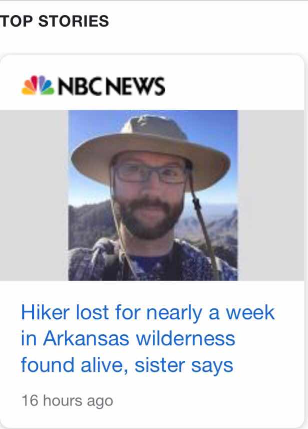 In the news this past week was the story about the missing hiker in Arkansas, as noted by this google search results above.